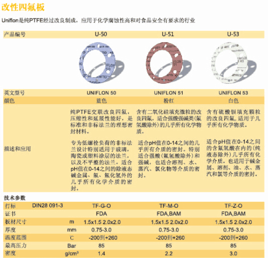 純四氟墊片、四氟夾包墊片、膨脹四氟墊片、改性填充聚四氟乙烯墊片。